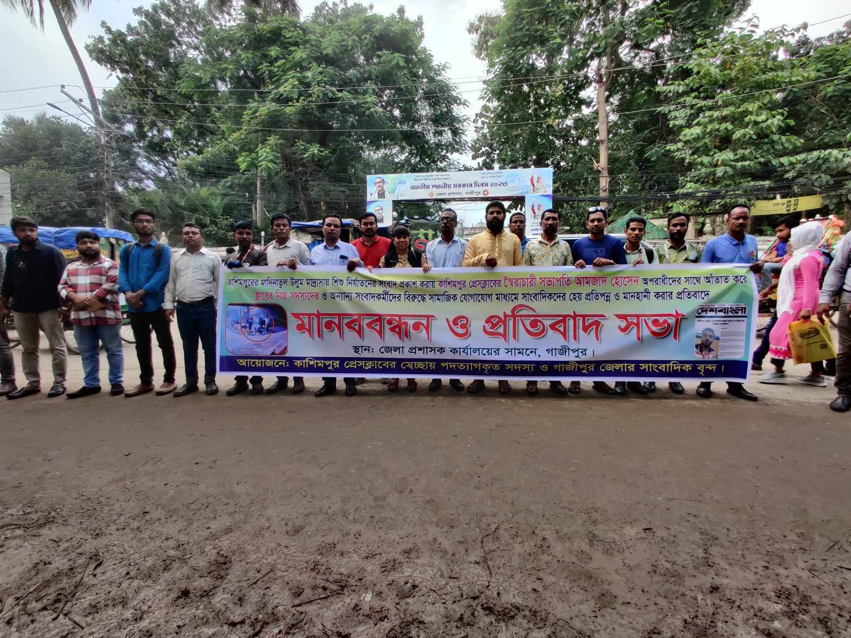 রবিবার ২৪ সেপ্টেম্বর দুপুরে গাজীপুর জেলা প্রশাসক এর কার্যালয়ের সামনে কাশিমপুর প্রেসক্লাবের ভুক্তভোগী সাংবাদিকগন এ মানববন্ধন ও প্রতিবাদ সভা শেষে জেলা প্রশাসক এবং গাজীপুর মেট্রপলিটন পুলিশ কমিশনার সহ ভিভিন্ন দপ্তরে স্বারক লিপি প্রদান করেন । এসময় ভুক্তভোগী কাশিমপুর প্রেসক্লাবের বর্তমান কমিটির সদস্য ও সাধারণ সদস্য এবং ভুক্তভোগী সাংবাদিকরা বলেন, কাশিমপুর প্রেসক্লাবের সভাপতি আমজাদ হোসেন কাশিমপুর প্রেসক্লাবে একক আধিপত্য বিস্তার করার জন্য এবং নিজের অপকর্ম ঢাকার জন্য ক্লাবের সদস্য ও বিভিন্ন সংবাদকর্মীদের বিরুদ্ধে মিথ্যা অপপ্রচার করে সামাজিক যোগাযোগ মাধ্যম ফেসবুকে তার নিজের আইডি থেকে একটি সিসি টিভির ফুটেজকে বিভিন্নভাবে কেটে প্রচার করায় তার তীব্র নিন্দা ও প্রতিবাদ জানান।